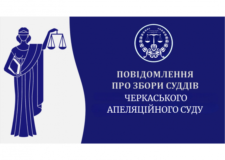 22 грудня 2025 року о 9 год. 00 хв. у Черкаському апеляційному суді за адресою: м. Черкаси, вул. Верхня Горова, 29, відбудуться збори суддів, щодо обрання суддів на адміністративні посади Черкаського апеляційного суду.